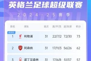最新英超积分榜↓